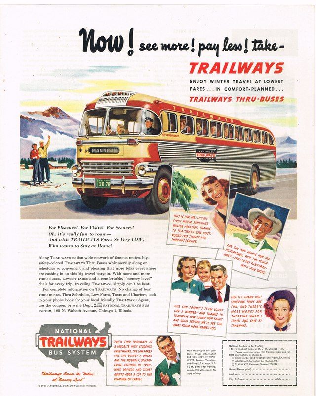 Trailways Thru-Buses Transportation Advertisement