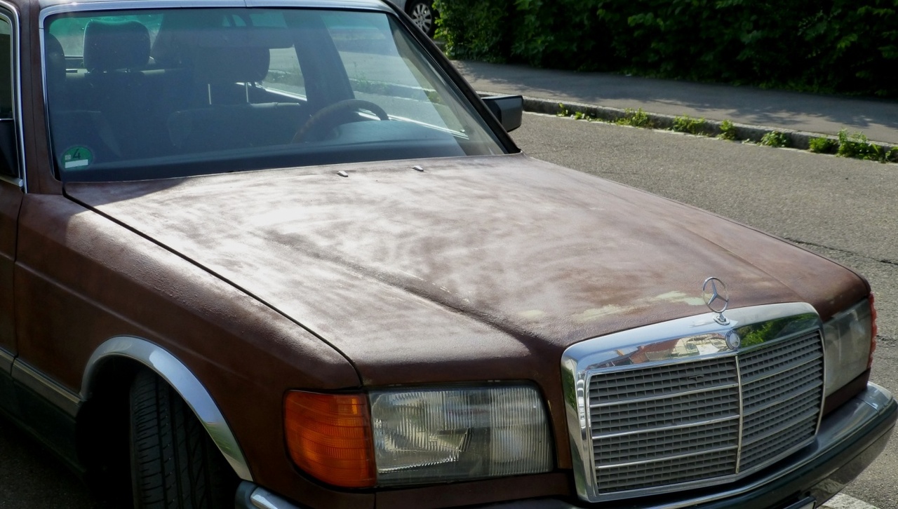 W126 Mercedes Benz S-Class rat/rust front side view