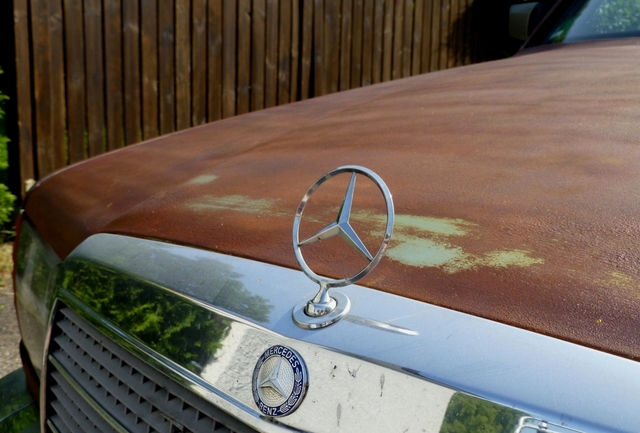 W126 Mercedes Benz S-Class rat/rust front star view