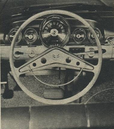Designed for good view of instruments, the 1959 Chevrolet has a sharp vertical angle in the middle.