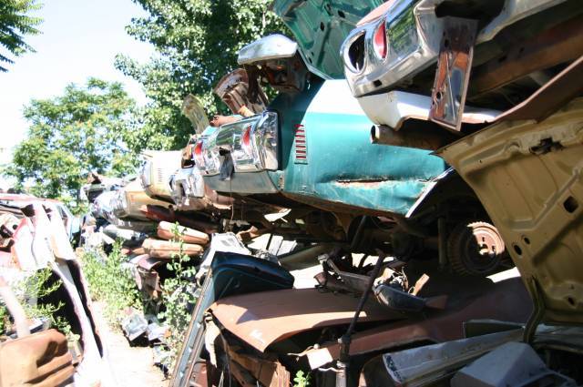 Here is a photo from Dans Garage, with pictures of some of the many rows and stacks of cars and parts!