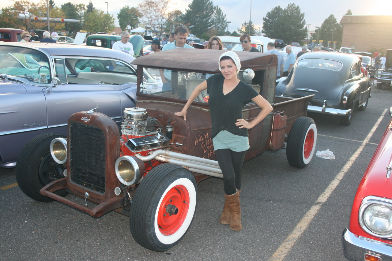 Monica with Scott's 1929 Chevy truck at the Aurora cruise
