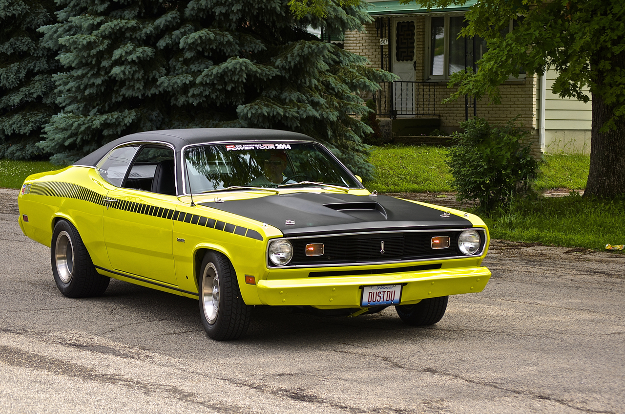 DUSTY - 1970 Plymouth Duster 440 w/727 Auto built by L&P Racing. Hughes Performance Pro Street 3000 Torque Converter, Accel Ignition with Mopar Chrome Box, TTI Headers and TTI 2/5\" exhaust with Quick Time Performance Electronic cutouts. OWNER: Dave Ford Algonquin IL