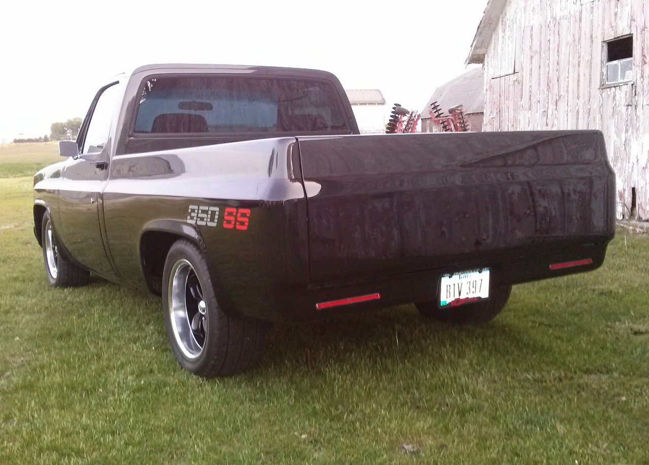 Nick Hayes,1981 chevy shortbed, full frame off restoration, side markers, tailgate, box all shaved, front bumber narrowed in for a tighter fit. What do you think?