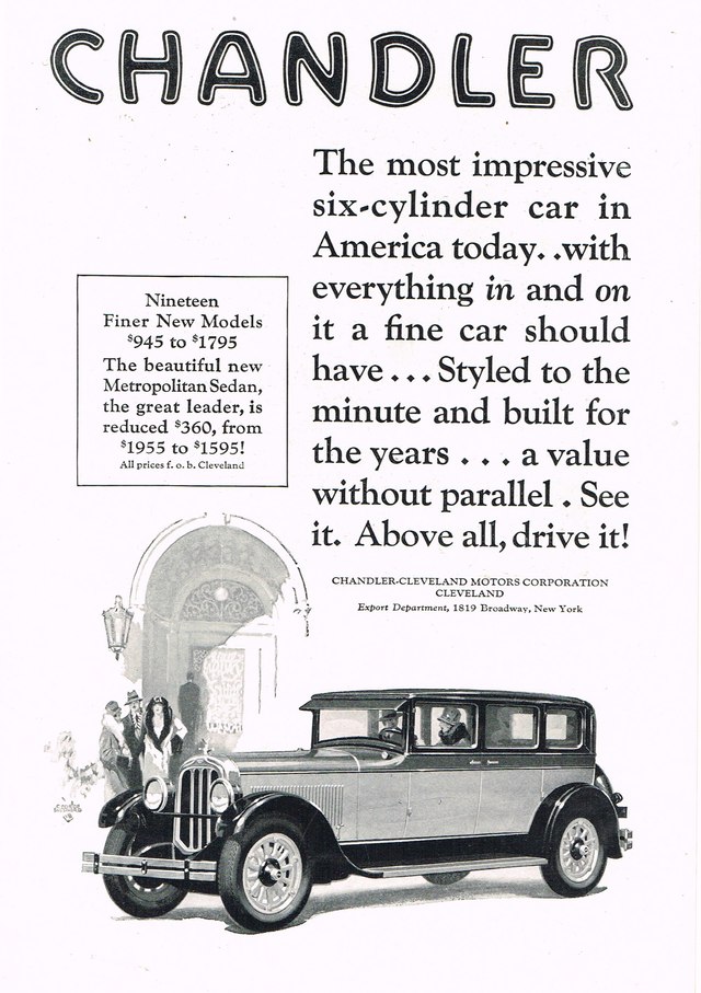 1926 Chandler Metropolitan Sedan Advertisement