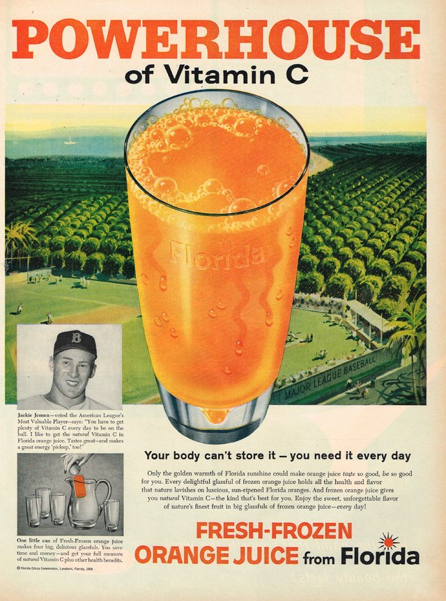 1959 Florida Orange Juice Ad with Jackie Jensen