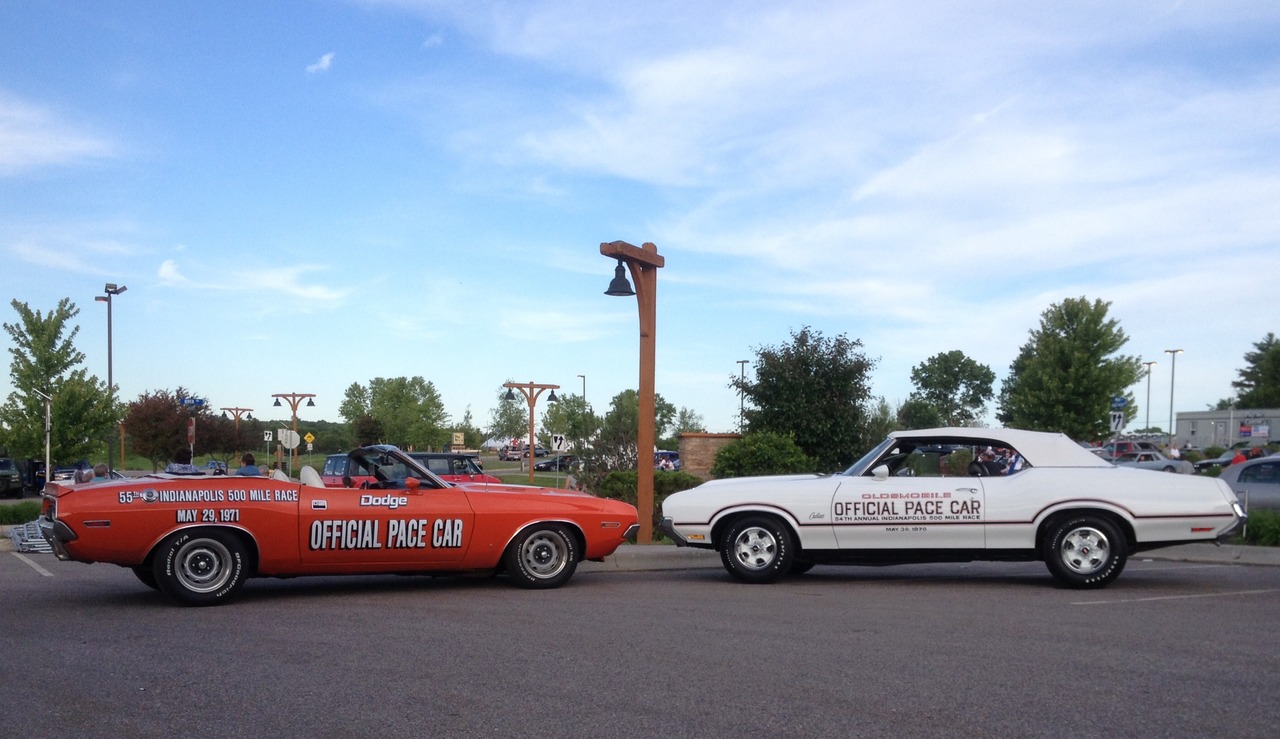 '70 and '71 Indy 500 Pace Cars side by side.