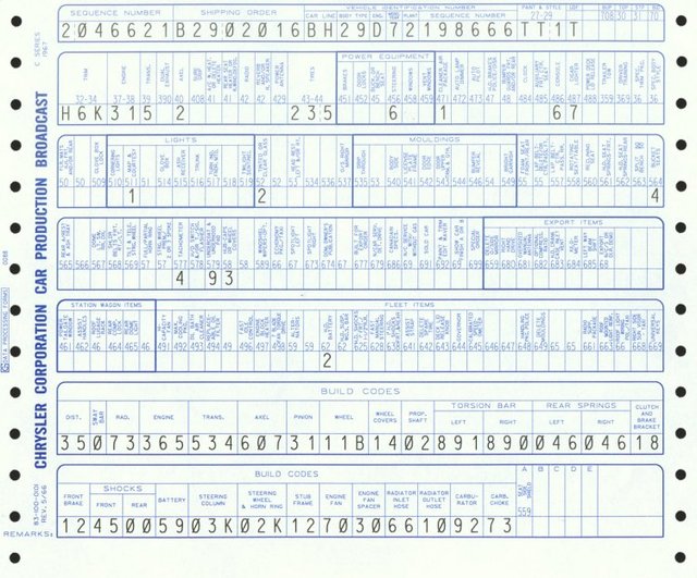 1967 Plymouth Barracuda Broadcast Sheet