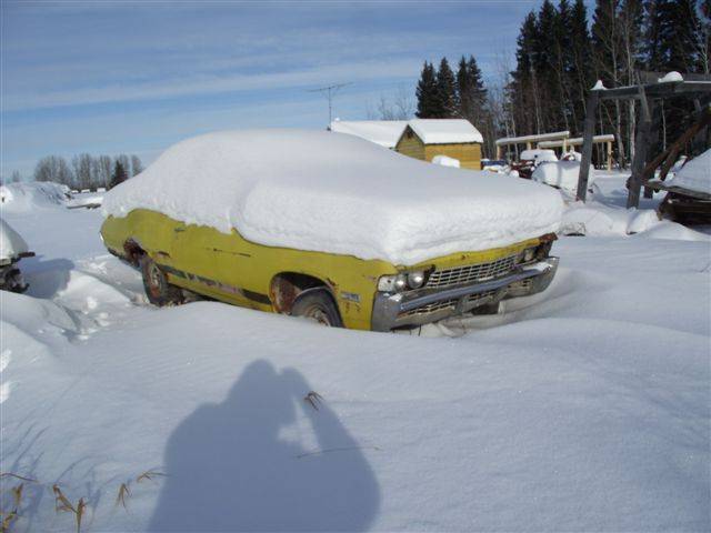 Hibernating 1968 Chevy Caprice big blocks in northern Saskatchewan
