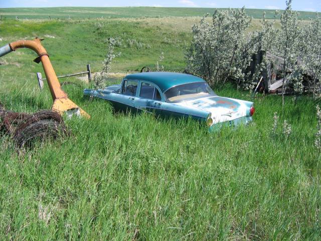 1950's 4-door sitting in a field