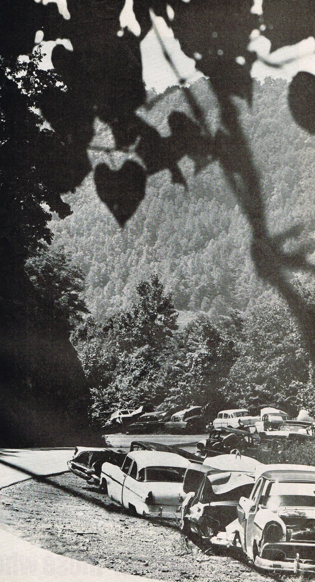 Appalachia is an elephant's burial ground for defunct automobiles like these forlorn junkers abandoned near a traveled highway.