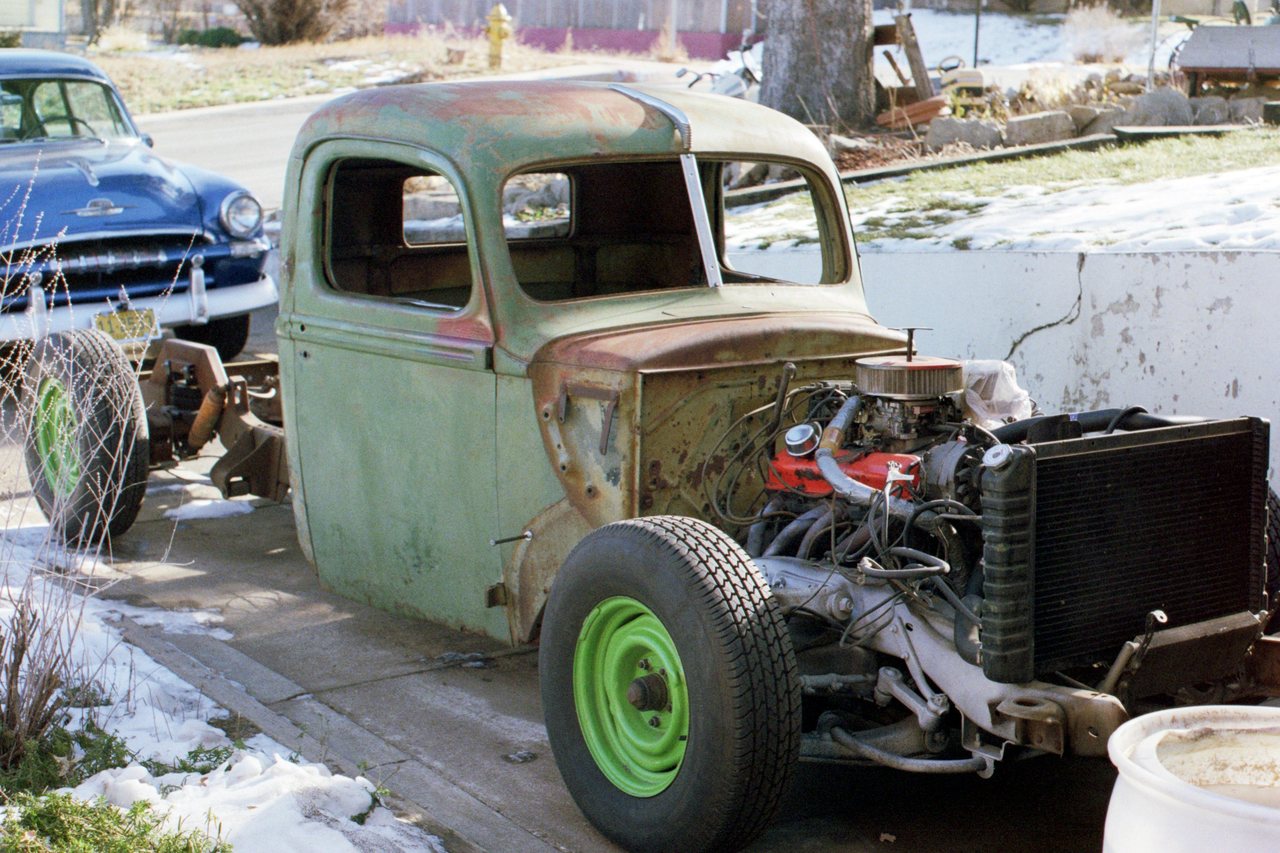 1941 Ford cab on 1974 chevy pickup frame and running gear; rat build in process