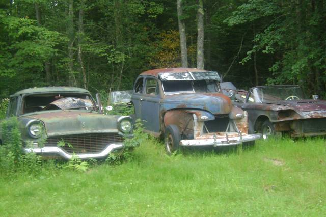 Wow, Studebaker, '46 Ford, and Thunderbird. All look workable. Get them off the grass and under cover.