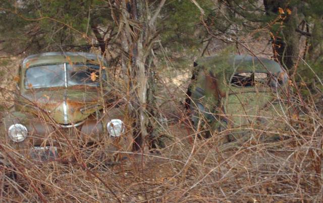 Car on left is a '41 Ford, can't tell about the other. If I had to guess, I'd say '39 or 40 Ford sedan.