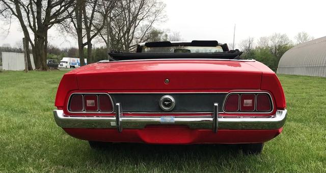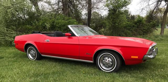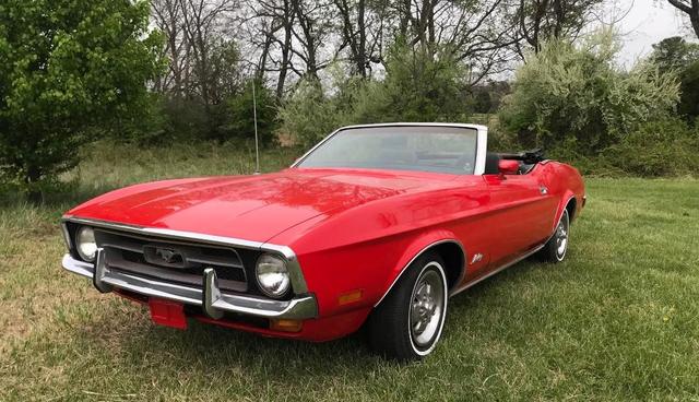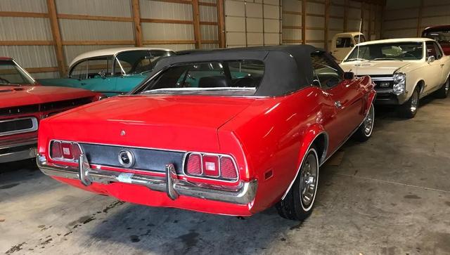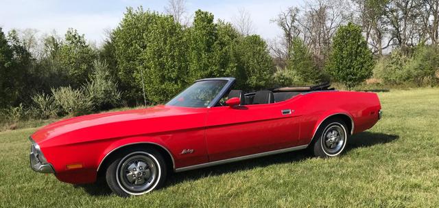 1972 Ford Mustang Convertible with 351 cu in V8, (Cleveland), automatic transmission, power steering, power brakes, power top, and factory air conditioning. Very nice running convertible with all the right options. We just did a complete repaint and it looks outstanding. Good solid undercarriage, nice original interior, and a great running car. Doesn't get much better than a red Mustang convertible with a 351 engine, and factory air.
