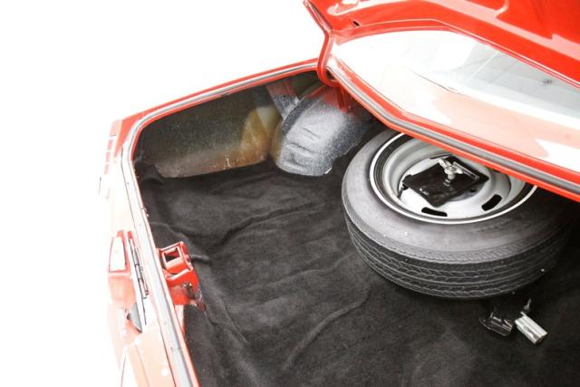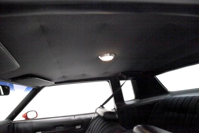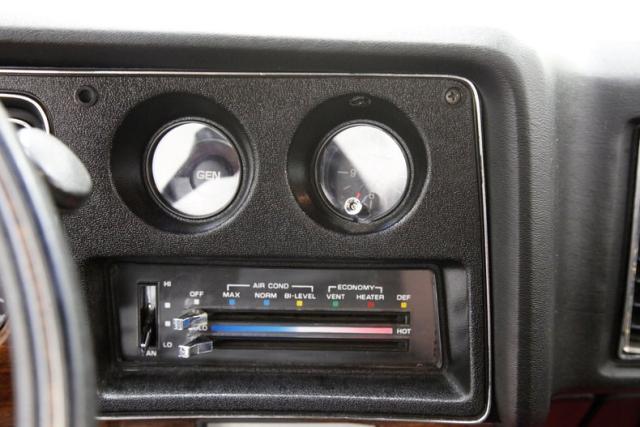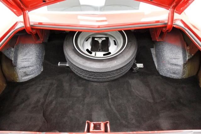 Plenty of shiny black is the color for the interior and it encompasses not only the seat bolsters and carpet but the dash surround, door panels, and headliner. A combination of vinyl and cloth, in almost perfectly preserved factory form, a front split bench and rear full bench have virtually no marks or stains and certainly no rips or tears. The door panels are very clean vinyl and plastic coverings with all working cranks and a toggle for the exterior mirror. Some burl accenting in wood appliqu for the dash instruments and radio panel on the lower dash are seen along with some extra round gauges residing next to the burl within 2 additional textured backed panels infant of the driver. A standard GM Monte Carlo steering wheel fronts the dash. We note air conditioning, a clock, and the factory AM/FM radio are also present. Red floor mats, protect wonderfully preserved and like new black carpeting flooding the floors. A nice tight black lightly textured headliner is above all this luxury and originality.