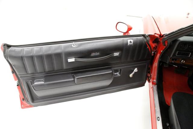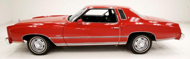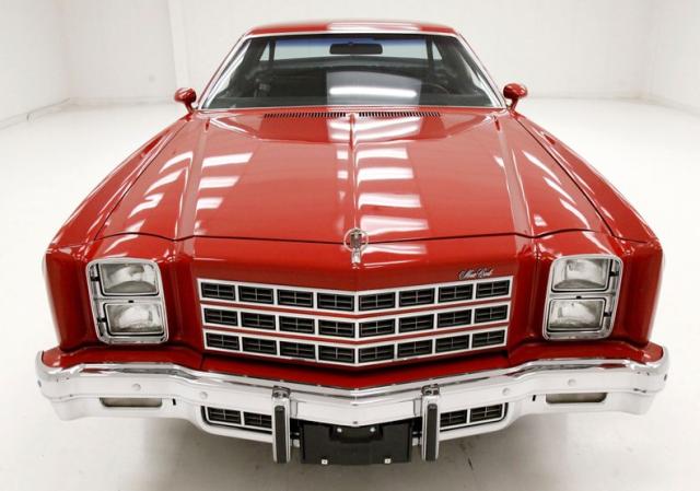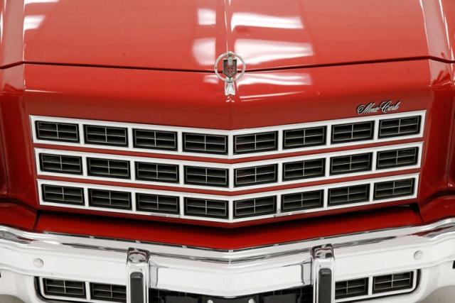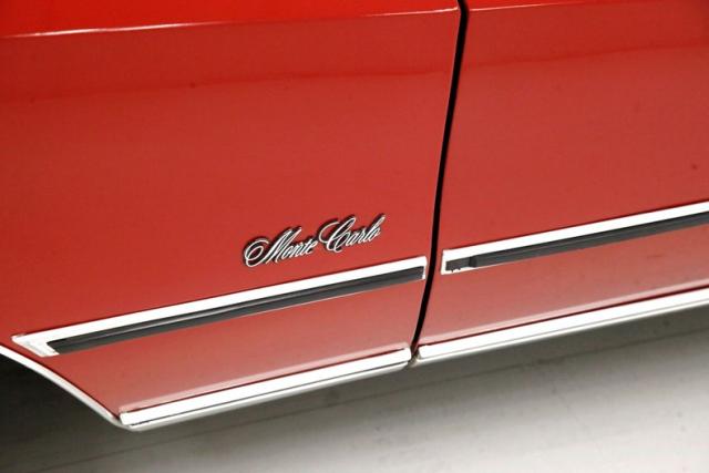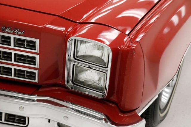 Deep end of the pool red paint done right from the factory with only a few non noticeable flaws, plenty of brite work, and a square opera window B pillar steel top drapes this \'77 \"Luxo-Muscle\", (\"Look! Up in the sky, it\'s a muscle car...no its a luxury car!). True to form, a 1977 second gen Monte Carlo through and through, it sports a long, long hood, and almost as long trunk deck. All badging trim work and chromed bumpers are very clean and rust free. Some black accenting trim surrounded by stainless runs through the body sides just below half way, and it sports stainless rocker coverings. Plenty of square and rectangle 70\'s design is present particularly with the grille, flanking dual stacked headlights fenders and tail lighting. Produced when cars were cars and status was measured by the inch, we possess a nice winner that oozes success and a piece of red eye candy.