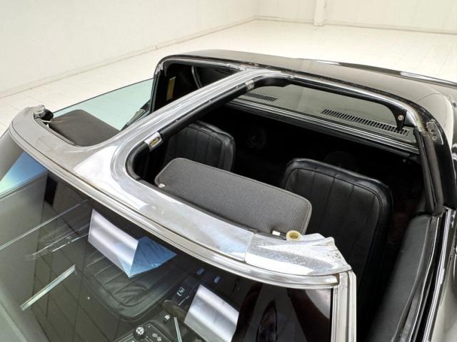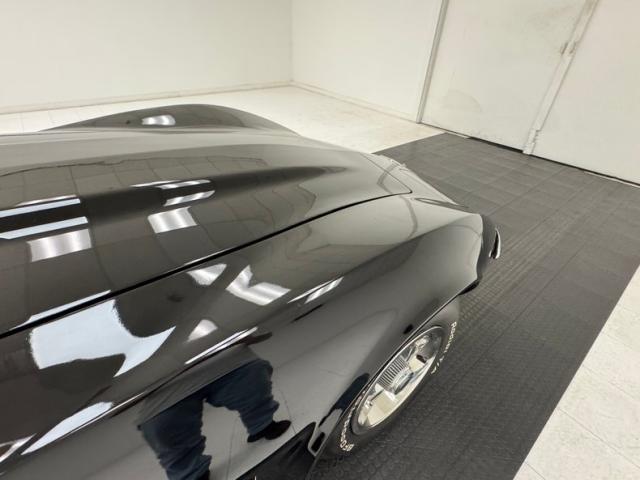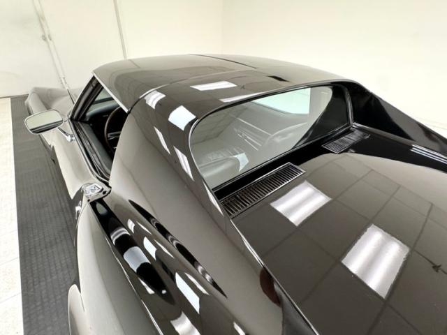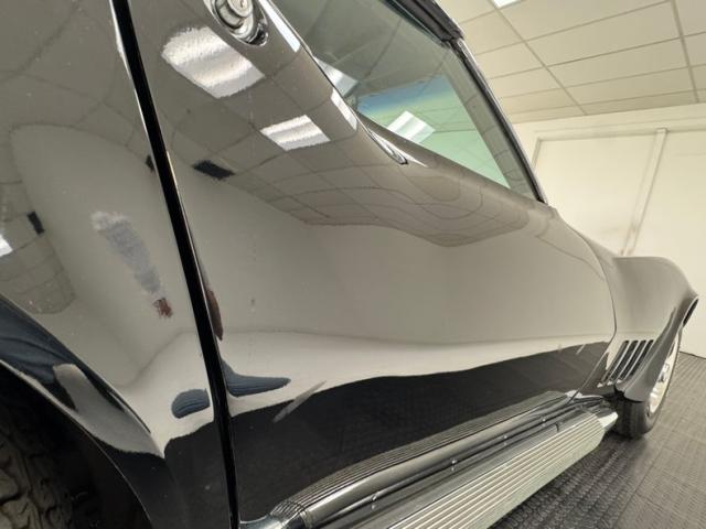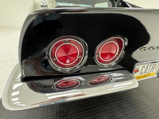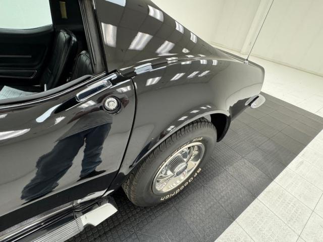 This great American sports car is finished in Black, the right color to enable metal accents to pop and there are several notable ones including the front and rear bumpers which hug the body, the side pipes, and of course the 15-inch Chevrolet Rally wheels wrapped in 60 series tires with an early 2025 date code. Those side pipes are covered with a finned exterior that accentuates the square polished tips that face downward instead of outward. A vertical rear window is encased in flying buttresses that extend over the decklid which goes flat just before a subtle spoiler rises from the body, itself framing the iconic quad tail lights underscored by a split rear bumper. Fender vents are a key feature of any Corvette and \'68 does it right, while the low, pointed nose emerges from rising shoulders over the front wheels. Imperfections include chips, scuffs, and scratches throughout, areas of orange peel, filled holes in the hood, evidence of former luggage rack, evidence of repairs on nose, wheels arches, fenders, left rear quarter panel and some paint runs.