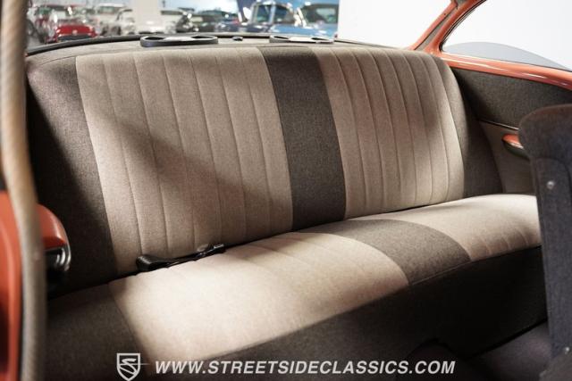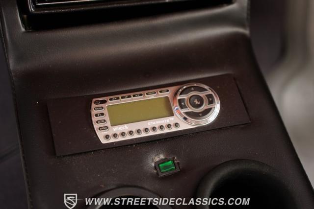 Inside, the upholstery has been upgraded with comfortable two-tone dark and light gray tweed cloth, seat belts, a retro AM/FM/cassette player with bow-tie logo radio in the dash, a removable center console with cup holders, and Starmate R satellite radio. A modern air conditioning system and tinted glass keep the cabin cool on hot days.