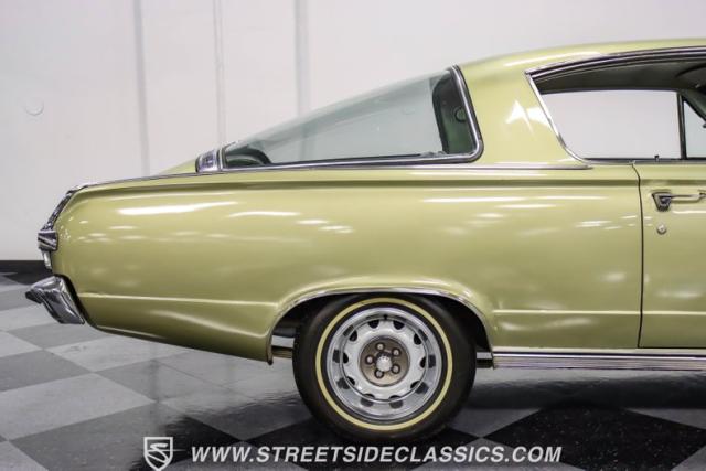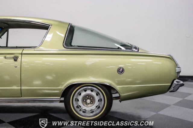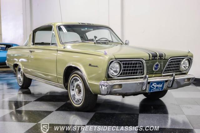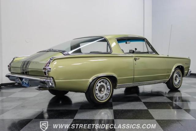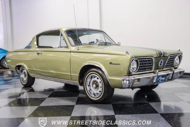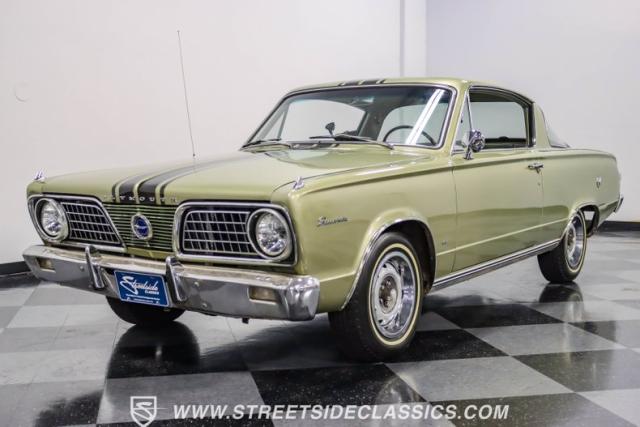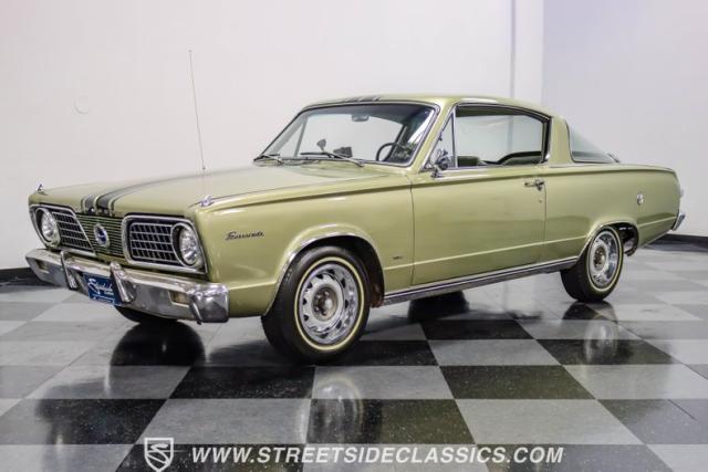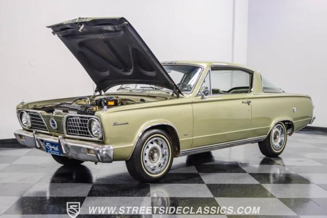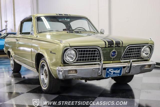 The 273 cubic inch V8 engine has been rebuilt for reliable performance. It\'s equipped with an Edelbrock intake manifold and FiTech electronic fuel injection, optimizing fuel delivery and throttle response. A rebuilt 3-speed automatic transmission handles gear changes with precision. The MSD ignition system provides consistent spark, while dual exhaust with Flowmaster mufflers delivers a muscular growl. Updated suspension components improve handling, and front disc brakes offer strong stopping power. Power steering rounds out the driving experience, making this Barracuda a joy to pilot on any road.