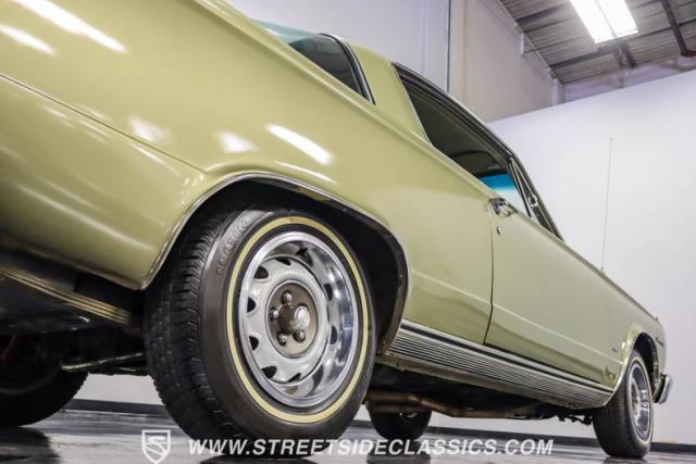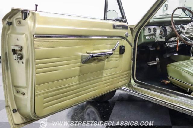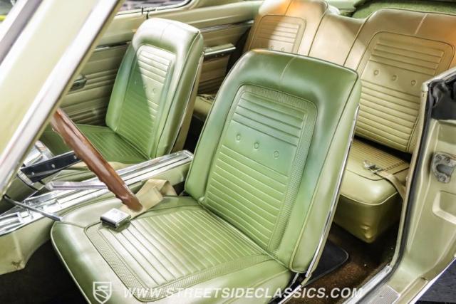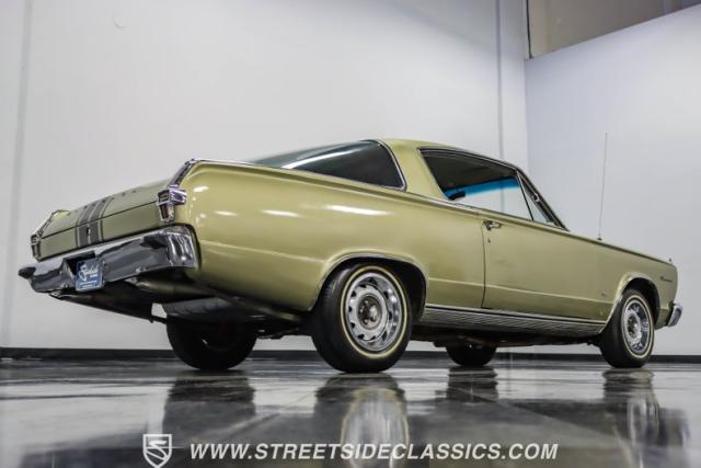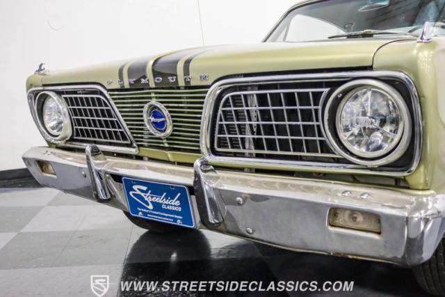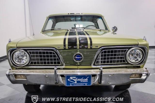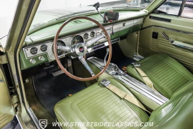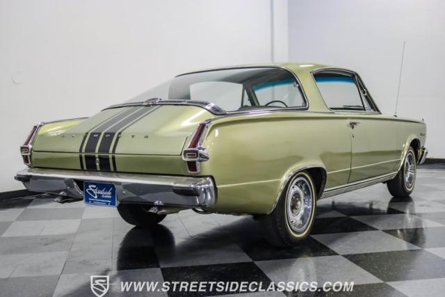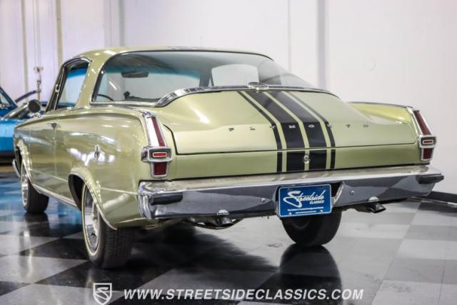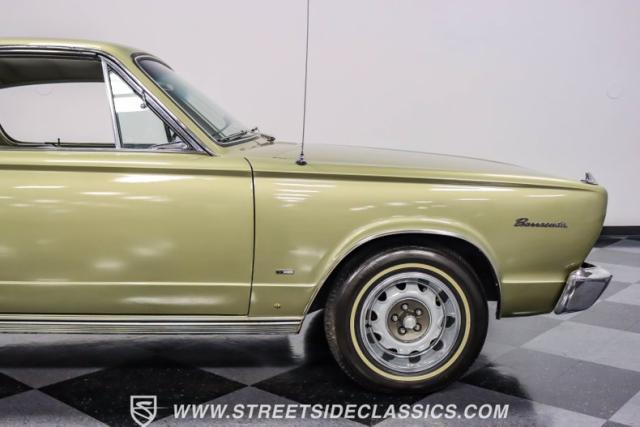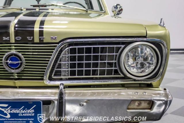 This 1966 Plymouth Barracuda sports a factory correct Citron Gold Metallic exterior that really grabs attention. The fastback profile showcases pure 60s muscle, featuring the distinctive wraparound rear glass and clean lines that defined the era. Custom tri-bar headlights flank the grille, adding a unique touch to the front end. Chrome bumpers and trim provide sharp contrast against the golden paint. Rolling on 14-inch wheels wrapped in 195/75R14 tires, this Barracuda sits with purpose and poise, ready to dominate the streets or shine at car shows.