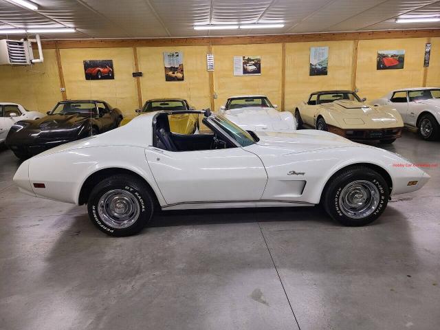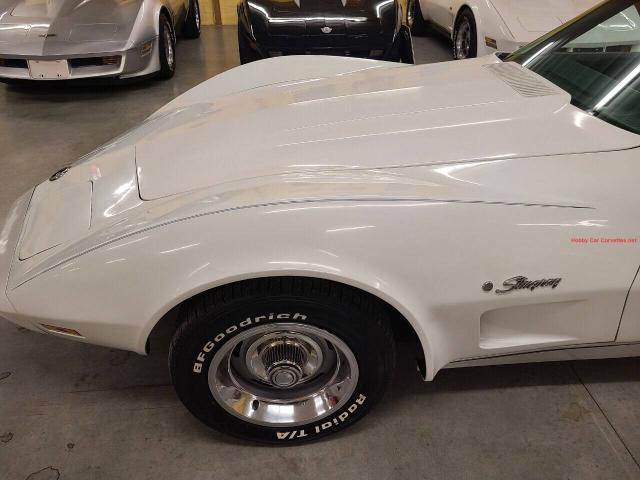 1974 Classic White Corvette Stingray T Top For more information visit: https://www.hobbycarcorvettes.net/corvette/1974-classic-white-corvette-stingray-t-top/ Sale Price: $ 22000 Transmission: ManualEngine: L48/350Mileage: 18,880 miles on dash Details 350 engine, 4 speed manual transmission, blue interior, power steering, 18,880 miles on dash (title is exempt for mileage), rally wheels, dual exhaust, fiberglass bumpers, Edelbrock aluminum intake, Holley carburetor, and much more. We changed the oil and filter, rear end grease and additive and checked and lubed the chassis. We also replaced all 4 brake calipers, brake hoses, brake pads, master cylinder, upper and lower control arm bushings, upper and lower ball joints, front and rear shocks, sway bar links, rag joint, tongue bushing, leaf spring rubbers, transmission mount, emergency brake cable, fuel pump, water pump, thermostat, upper radiator hose, starter, complete carpet set, thermostat hosing, spark plugs, and much more. This corvette runs and drives really nice with plenty of power from the current engine. This was the first year for rubber bumpers on front and rear, and the only year for a split rear bumper.