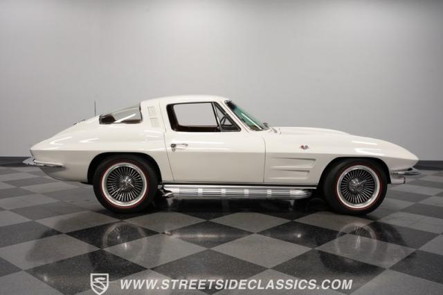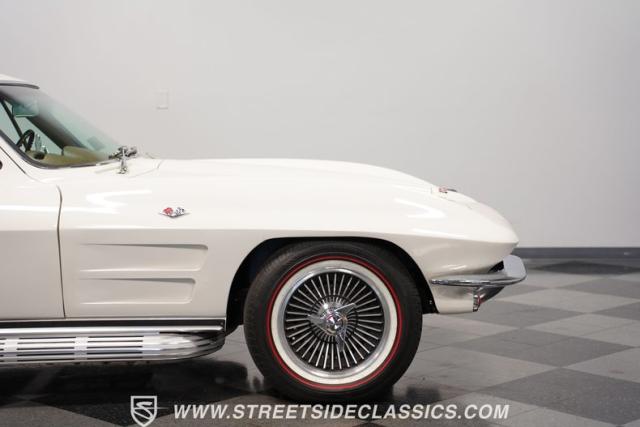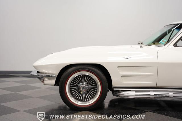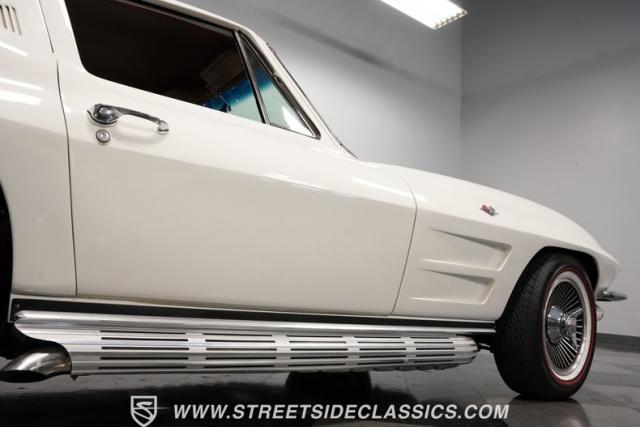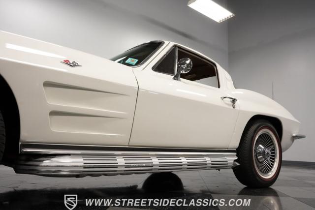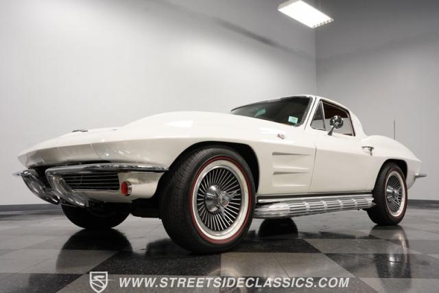 This 1964 Chevrolet Corvette Coupe rocks a classic white finish from a frame-off restoration that gleams the chrome. The iconic mid-year styling flexes its muscle with those signature fender peaks and razor-sharp body lines. Custom knock-off wheels fill the fenders perfectly, wrapped in meaty 215/70R15 rubber. Those wicked side pipes make a bold visual statement while delivering an old-school V8 growl that\'ll wake the neighbors.