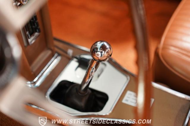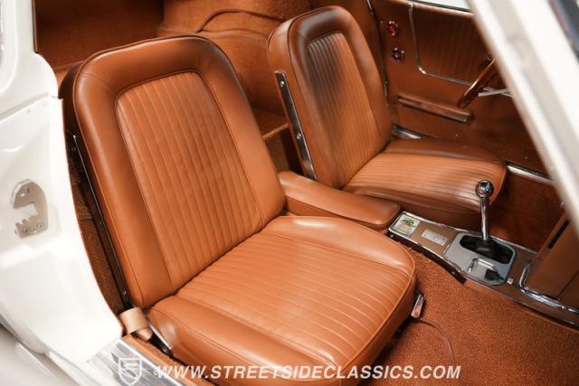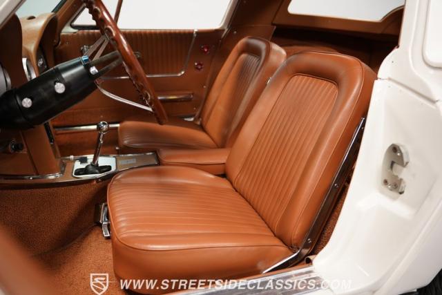 The restored tan vinyl interior takes you back to \'64, done right. Those factory bucket seats keep you planted while you work the floor-mounted shifter through the gears. Modified for modern comfort, it has ice-cold air conditioning and an AM/FM stereo featuring USB connectivity for your tunes. The tilt steering column adds extra leg room, while the dash layout puts every gauge right where you need it.