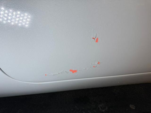 The top edge of the driver\'s door shows a bit of patina but the rest, and the passenger door, are in great shape. Red is the perfect complement to the gray exterior and appears on the door sandwiching a ribbed aluminum trim piece and surrounded by white vinyl panels. The bench seat is in good condition and continues the red and white vinyl pattern found on the doors. Red protrusions and the metal insert on the doors flow seamlessly to the dash and form a continuous design. The beautiful dash is preceded by a red plastic steering wheel with metal horn ring. An arching speedometer tops out at 150 mph and is flanked by two round gauges denoting RPM\'s and time. An AM radio is in place and looks to be original and the vent controls with sliding knobs are situated further right. We note some duct tape residue on the glove box but it appears its falling problem has been fixed. A short shifter sits on the hump and the floor is covered with red loop style carpet which shows some wear.