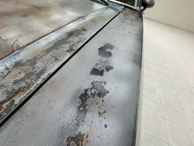 Generally clean underneath with the dual exhaust flowing through a pair of race mufflers and terminating under the car. Power disc brakes up front and power drums in back and suspension remains basic as coil springs aft, and leaf springs in the stern. There\'s very little surface rust on the underside, but we do note some rust on the door bottoms.