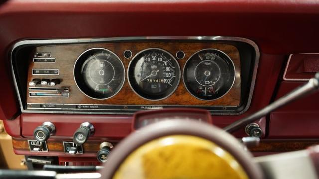 Step inside to a world where Garnet Red leather seats welcome you, promising comfort on long drives. The very original interior, including a new dash pad and a stock style radio complemented by an aftermarket oil pressure gauge, creates an environment that feels both adventurous and secure. Despite its age, the interior exudes a carefree charm, with a headliner that\'s in impeccable condition and seating that shows the life it has lived, ready for more. The presence of a column shifter and a center console adds a touch of functional elegance, making every journey memorable.