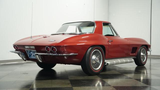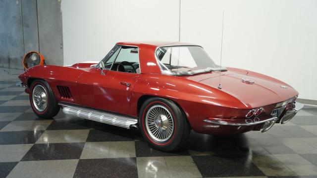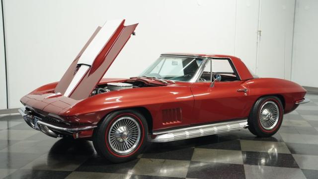 1967 was the final year for the C2 or \"Mid-Year\" Corvettes, which were also the most refined. Cherished by collectors and as well as those who just love to drive, the 1967 Corvette remains a favorite. This classic 1967 Corvette Convertible is finished handsomely in Marlboro Maroon with a black interior.