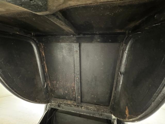 Direct drive spins the worm drive axle, setting the car in motion with mechanical drum brakes on the rear wheels. Full elliptic springs serve as suspension both front and rear. Meanwhile, the wood floor construction is clearly seen underneath where conditions are noted as clean, with obvious wiring and the only fluids being the grease that lubricates the steering components and wheels. No muffler, no tailpipe, no exhaust.