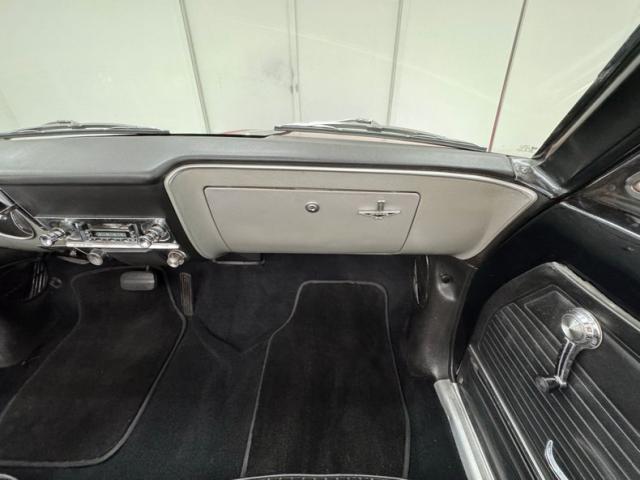 A swing of the sporty doors and we are greeted with a black painted metal surround for the door sills, then this changes to a horizontal stitched center panel. Here the armrest in black vinyl with a chrome trimming and chromed knobs and actuator lever are housed along with a Monza emblem. Very midcentury modern if I must say so myself. Slipping inside I rest my buttocks on wide buckets that practically take up the whole front row. These are recently recovered, nicely padded and have turks and roll inserts and smooth bolsters all in wonderful black! In back a nice bench and plenty of romper room for that 3rd date. Up front a large deluxe black rimmed steering wheel with a half horn ring and badged center fronts the original perfectly preserved dash. This has a black dual eyebrow shaped cowl design for the top and nice use of aluminum for the dash front panels, which include the instrument cluster and glove box covering. Some of the controls and options include the padded dash top, tinted windows seat belts, two speed wipers and a convenience group. The centrally mounted AM/FM/Cassette radio is also in a chrome bezel and looks right at home. The rear view mirror is a tilt inside glare style new for this year. Awesome conveniences and add ons, rarely seen on an early version of the Corvair. Black carpeting is flooding the floor and go with this car like a duck to water. \\