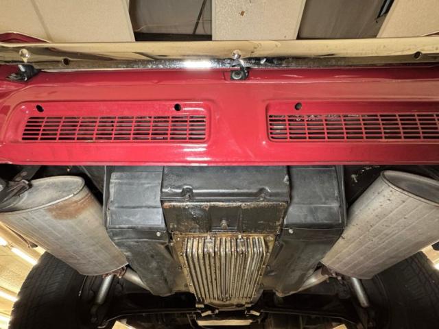 As I expected from this car, buttoned up and looking good with all straight steel painted black with light surface rusting. Definitely a ground effects type undercarriage, whether it\'s intentional or not it still looks great...look ma no driveshaft! Everything presents well right down to the 4 wheel independent coil sprung suspension, and 4 wheel drum braking. A chrome tipped dual exhaust is noted.
