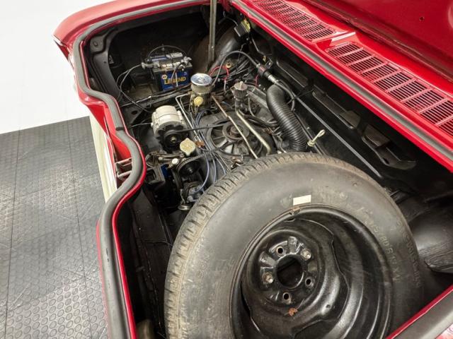 Matador Red in respray form covers the metal and overall exterior of the car and presents in very good condition. The fit and finish is good, the body is straight, and all is in working order. Chrome is in great condition. A newer black canvas convertible top is manually actuated up and down and works smoothly. Seen is a thin stainless trimming on the rocker and wheel houses and wide stainless making up the bezels for the dual headlights. Round taillights are bringing up the rear and these have backup lights optioned on and are right behind the engine. There is another nice bumper below. 13-inch wire wheel covers are on with knock off style hubs with dish centers and P185/80R13 tires, which is an add on option for the year. Corvair badging is original and correct. Nice exterior. Screw Ralph Nader I\'m hopping in.