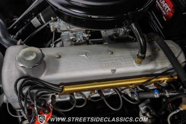 Powering this elegant machine is a 2.2-liter inline-six engine, harmoniously paired with a 4-speed manual transmission. Two Weber carburetors (original Solex units included) supply the fuel mixture, offering enhanced performance. A single exhaust system with an aftermarket muffler produces a refined tone. Four-wheel power drum brakes provide confident stopping ability. The coil spring suspension, complemented by shocks and a front sway bar, delivers the composed ride quality synonymous with Mercedes-Benz engineering.