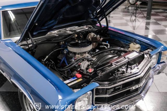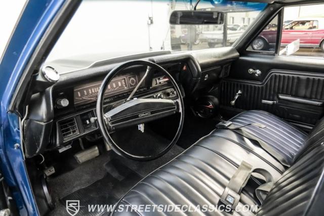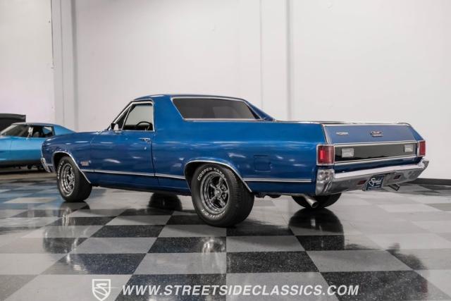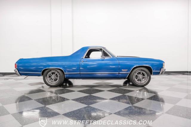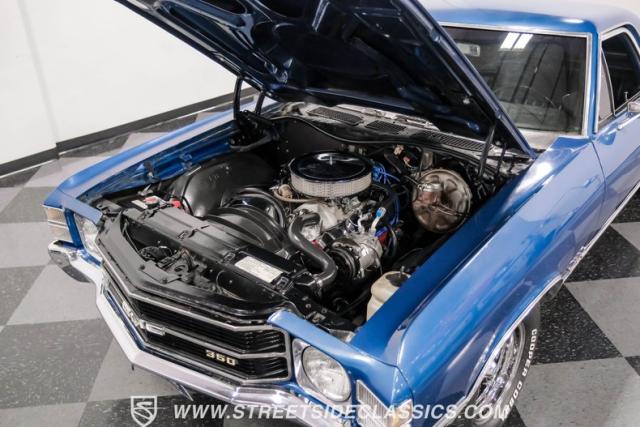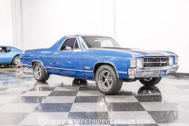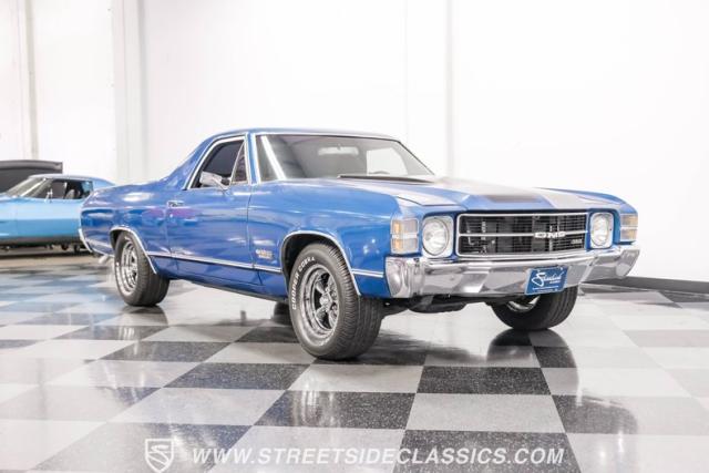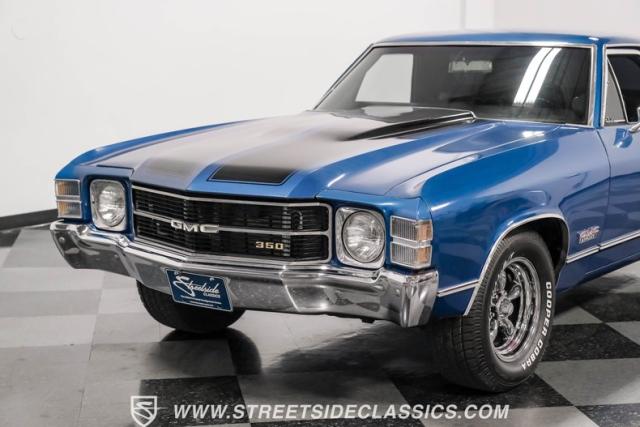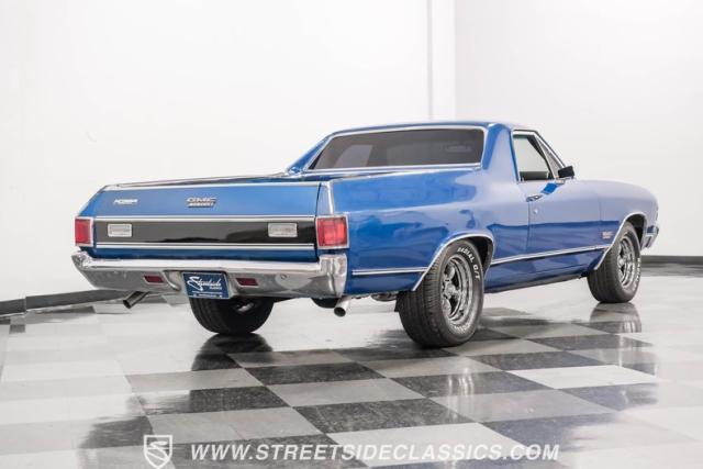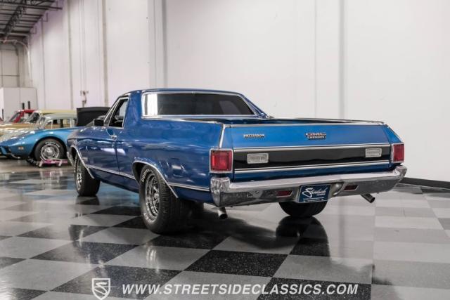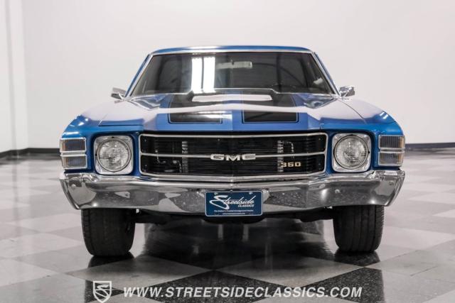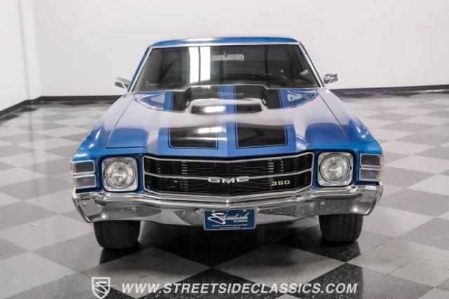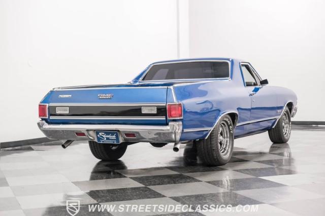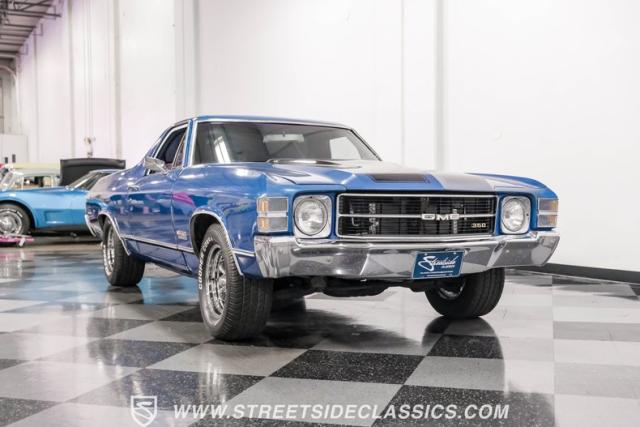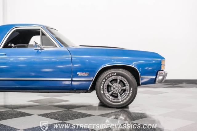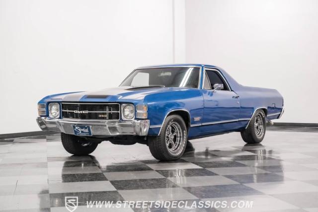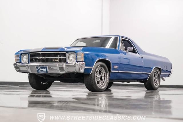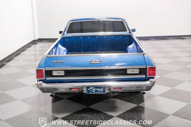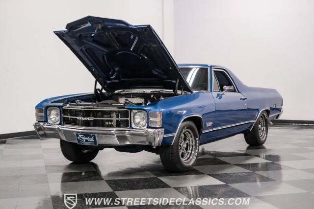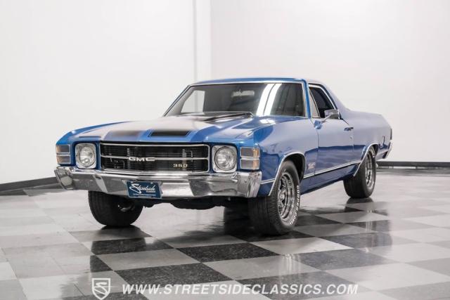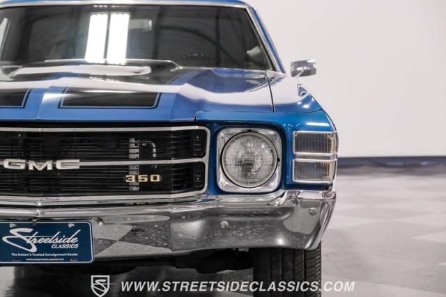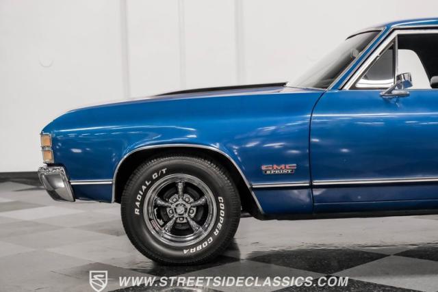 This rare 1971 GMC Sprint is a great way to get the look of an El Camino, but with a more distinct and interesting character. Not only are they a rarer sight today, but in this debut year, the Sprint was made in small numbers - only 5536 were produced for the 1971 model year. By comparison, Chevrolet delivered 41,606 El Caminos that year. There was a solid investment in this GMC with nice body panels, bright chrome bumpers and a distinctive blue metallic paint. Just like the El Camino, the Sprint has an instant muscle car level appeal, accentuated with a cowl hood, black SS style hood stripes, blackout grille and dual exhaust tips. The look is further enhanced with the addition of a set of chrome 15-inch American Racing wheels wrapped with Cooper Cobra Radial G/T tires staggered 255/60R15 front and 275/60R15 rear for just the right stance.
