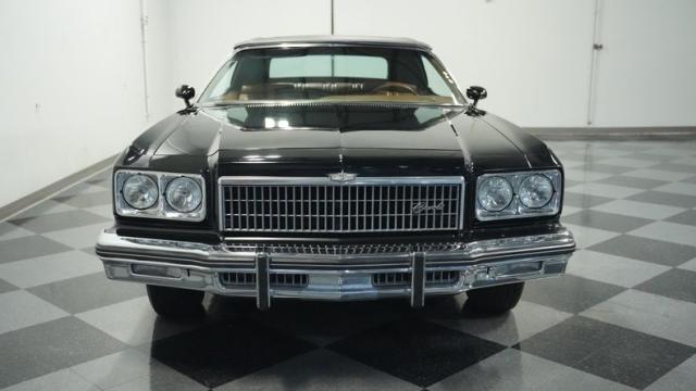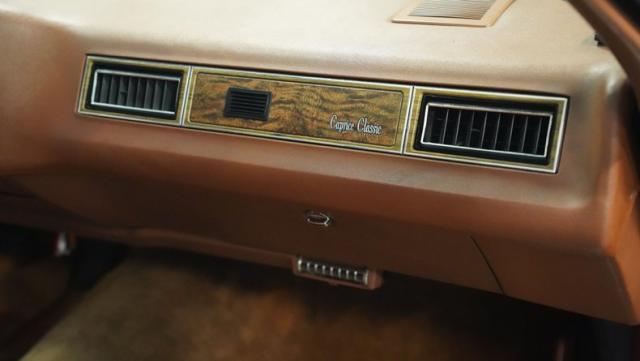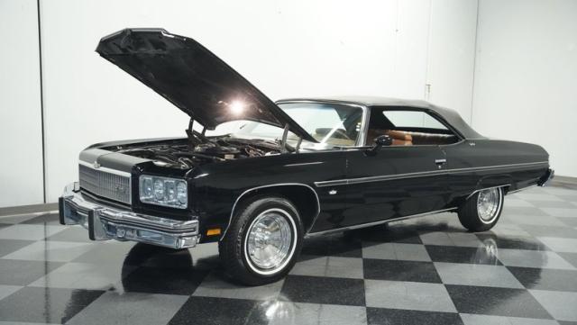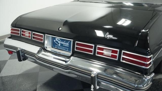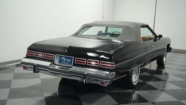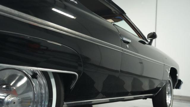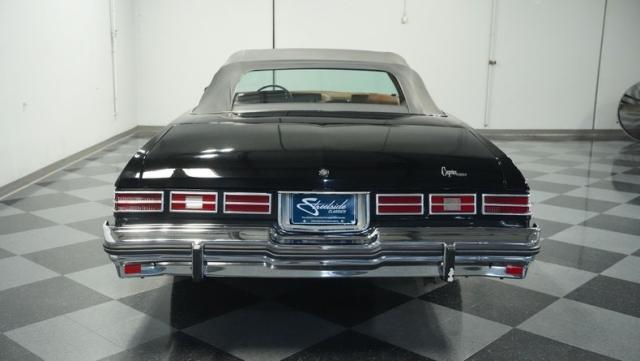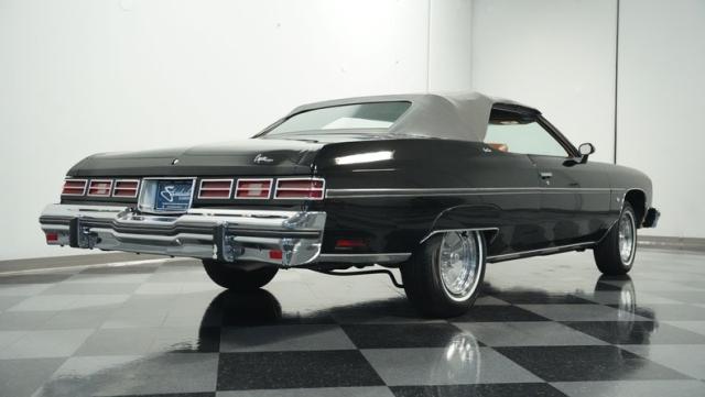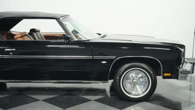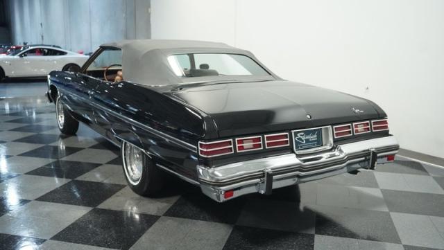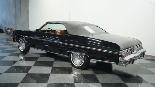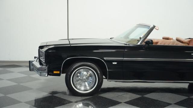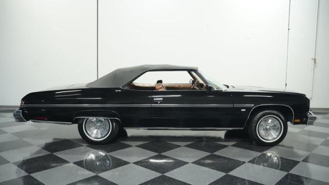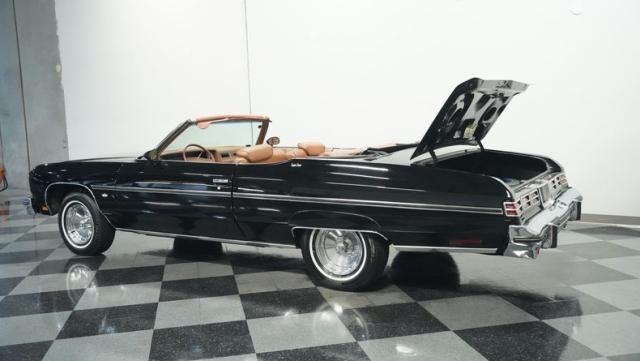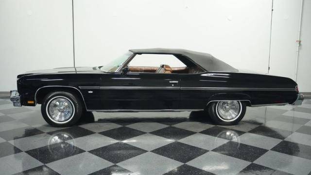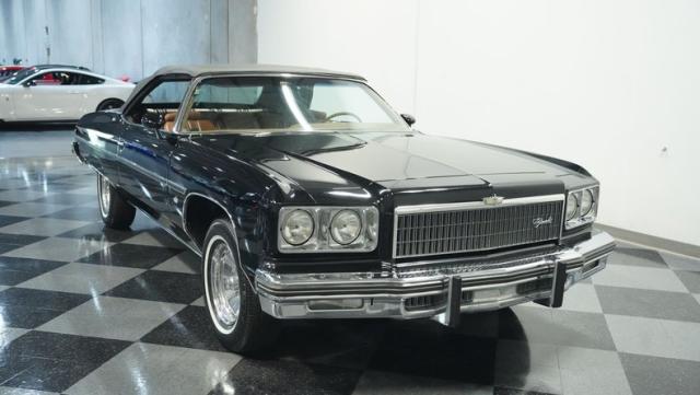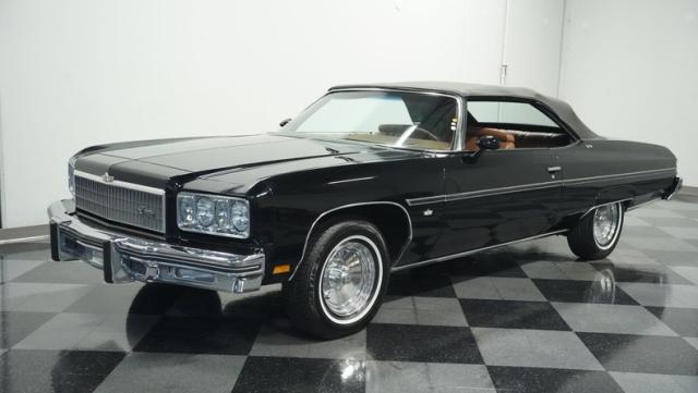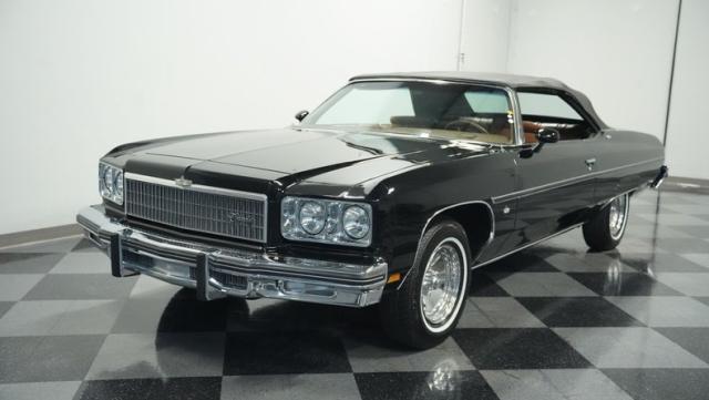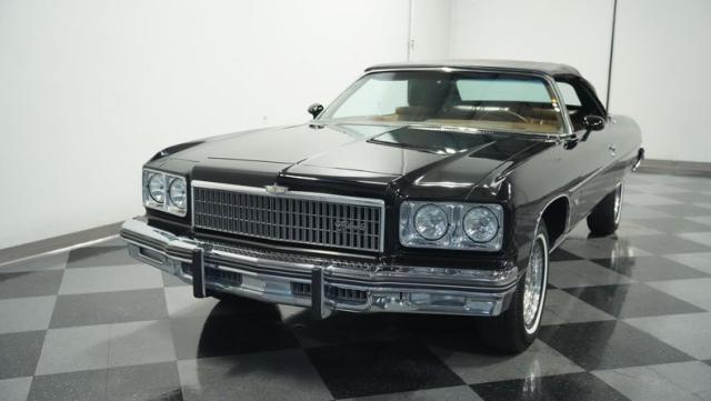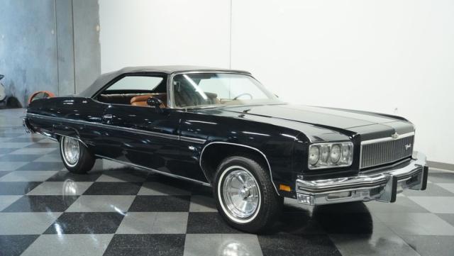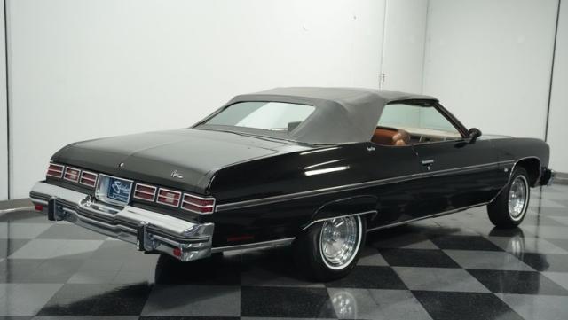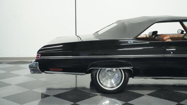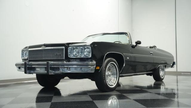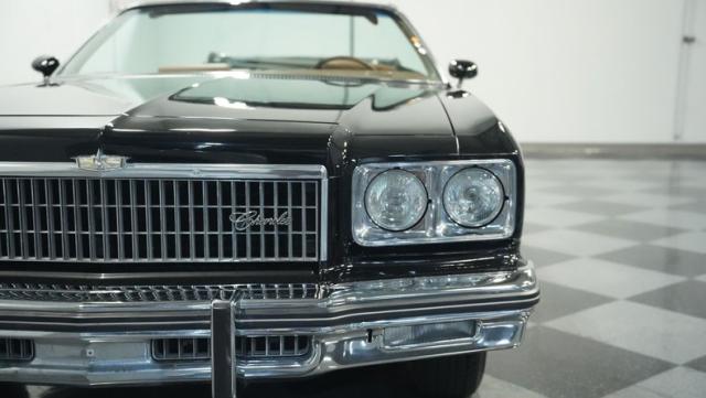 This 1975 Chevrolet Caprice Convertible marks the final year of the full-size Chevy drop-top, making it a true collector\'s item. The sleek black exterior exudes classic American style, complemented by a black cloth convertible top that folds away smoothly. Chrome bumpers and trim add a touch of brilliance to the dark paintwork, while the 15-inch wheels give this Caprice a commanding presence. The power-operated top functions flawlessly, allowing for open-air cruising at a moment\'s notice. With 225/75R15 tires all around, this Caprice combines vintage looks with modern road-holding capability.