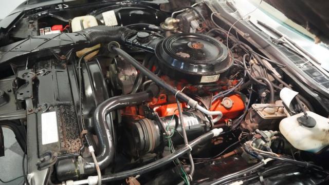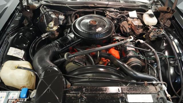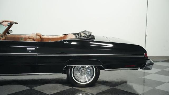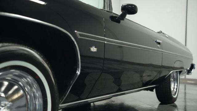 Under the hood, the original 350 cubic inch V8 engine paired with a 3-speed automatic transmission provides smooth, reliable power. This combination offers a balance of performance and efficiency that was ahead of its time. The engine bay maintains a stock appearance, showcasing the vehicle\'s originality. Power steering and power brakes make maneuvering this full-size convertible a breeze, while the dual-to-single exhaust system provides a subtle rumble. The 10-bolt rear axle ensures durability, and the coil spring suspension with shock absorbers and sway bars front and rear delivers a comfortable ride.