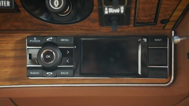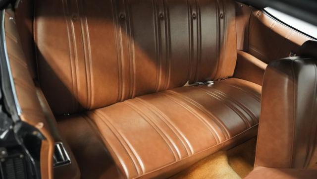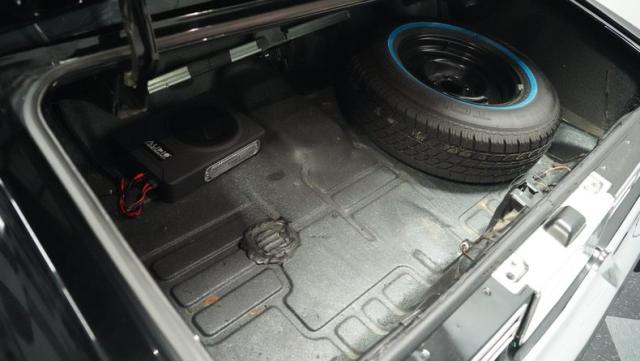 Inside, the dark saddle vinyl interior offers a spacious and comfortable environment. The split-bench seat provides ample room for passengers, while the column-mounted shifter keeps the floor clear for easy entry and exit. Air conditioning ensures comfort on warm days, and the AM/FM stereo with USB and navigation (albeit in German) adds a touch of modern convenience to this classic ride. Custom floor mats protect the carpeting, adding a personalized touch to the cabin.