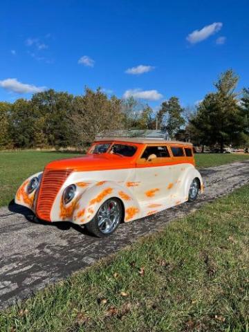 37 Ford Woody Custom Sedan Delivery. 1 of a kind Painted in beautiful House of Kolor White Diamond Pearl with Orange two tone. Fiberglass body with chopped top, custom roof, tinted windows. 5.0 liter Small block Chevy, 350 Turbo Hydramatic, Mustang II front suspension with Air Ride Technologies on all four corners, Power Rack and Pinion steering, Disc brakes, New Foose Wheels wrapped in new tires, Vintage Air and Heat, custom wood throughout, custom leather interior, bucket seats, Custom dash gauges and steering wheel, And so much more. A real crowd pleaser and bonafide show car that is drivable. Please Note The Following **Vehicle Location is at our clients home and Not In Cadillac, Michigan. **We do have a showroom with about 25 cars that is by appointment only **Please Call First and talk to one of our reps at 231-468-2809 EXT 1 ** FREE Consignment Visit Our Site Today Easy To List Your Vehicle and Get it Sold in Record Time.