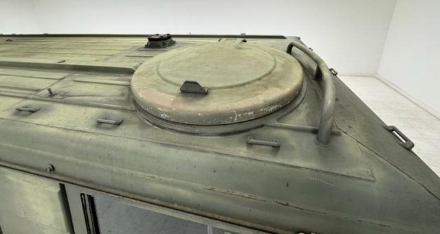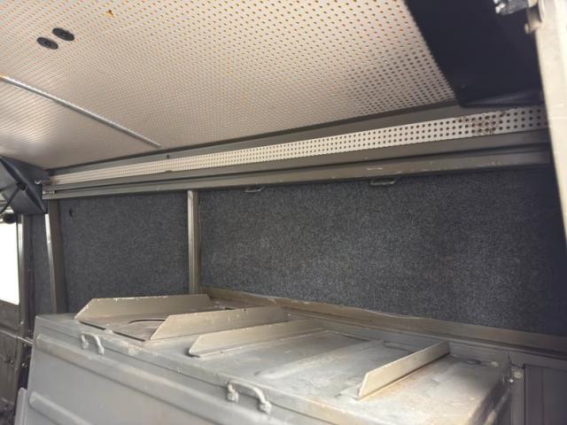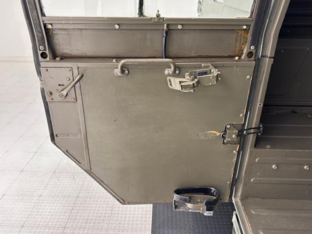 Light a breadbox on six wheels, the Pinzgauer is a rolling clinic of right angles with long, riveted steel panels in Olive Drab and a perfectly vertical, tall windshield. We do find some rounded edges in the corners of the rear door\'s windows where G-wagon type tail light ride low with a tubular bumper hugging the edge. From the side, the height is evident and the body perches high over the wheels, all six of the 15-inch five lug steel wheels with 245/75R15 tires all terrain tires with an early 2019 date code. Up top, there are a plethora of tie downs and a circular hatch in front while side mirrors extend outward, adding to the overall width. There are no dents and the paint has an appropriate aged patina that looks battle ready.