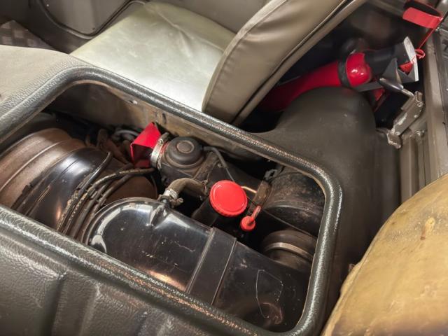 Between the front occupants lives an air cooled 152.3ci inline four cylinder, rated at 87 horsepower and fueled by a 1-barrel carburetor. There\'s a 5-speed manual and a 2-speed transfer case with 2.85 gears in each axle.