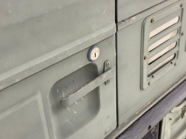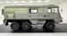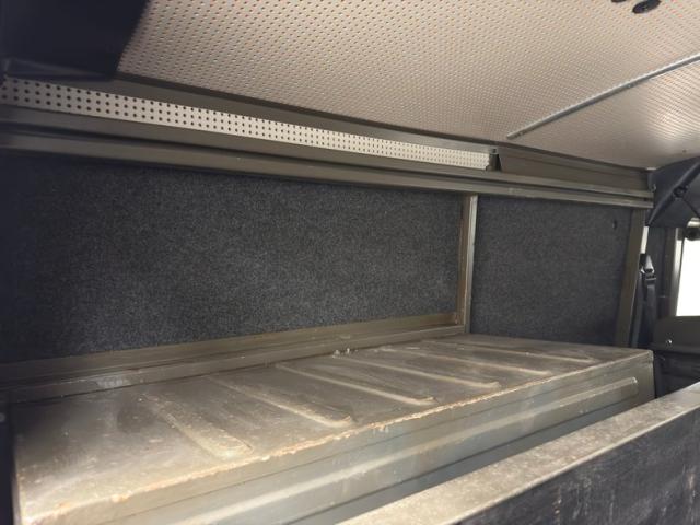 Olive green dominates the interior where things are definitely utilitarian, starting in the back with various shelves and storage units, a gray cloth wall covering, pegboard like inserts and headliner, equipment, and a couple of green vinyl bucket seats. Two more buckets are up front and flank the engine cover while a simple three spoke steering wheel presents to the driver and fronts a typically simple dashboard with a series of illustrated indicator lights over a speedometer and gas gauge. A number of levers reside in the center which we translate as axle drive, rear lock, and front lock, but your instruction manual will be helpful here. Steel plates reside on the floor along with a shifter while the wall, ceiling, and inner doors are barren steel.