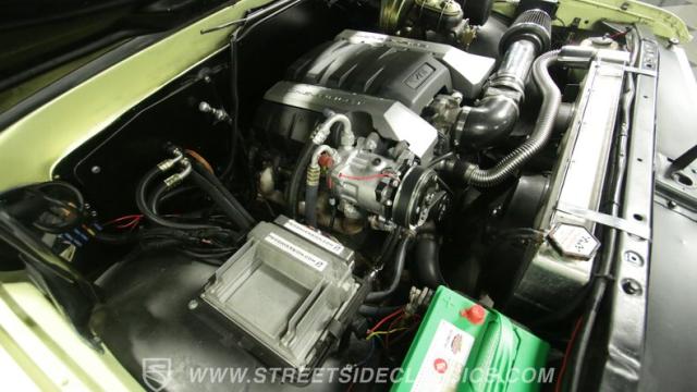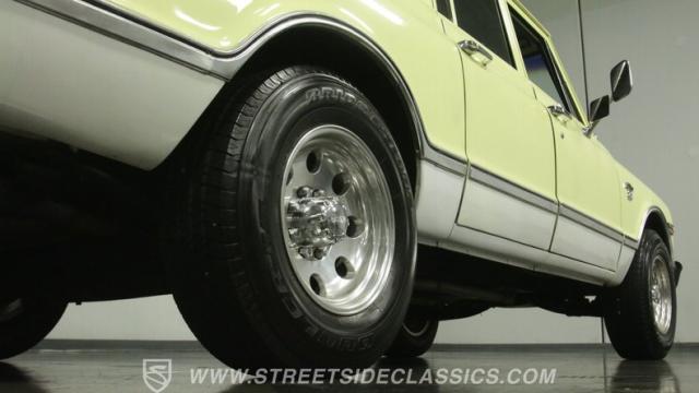 When you lift the hood, this one has the unmistakable look of upgraded power. It\'s a 5.7-liter LS1 V8. That means a healthy upgrade in horsepower and the reliability of fuel injection. And the V8 makes a dignified tune out of the dual exhaust and Magnaflow mufflers. It\'s a true cruiser with the 700R4 four-speed automatic transmission offering highway-friendly overdrive. You\'ll love the suspension going down the road because it\'s the comfortable trailing arm rear borrowed from the C10. Plus, you have power steering, front disc brakes, and good modern touring tires.