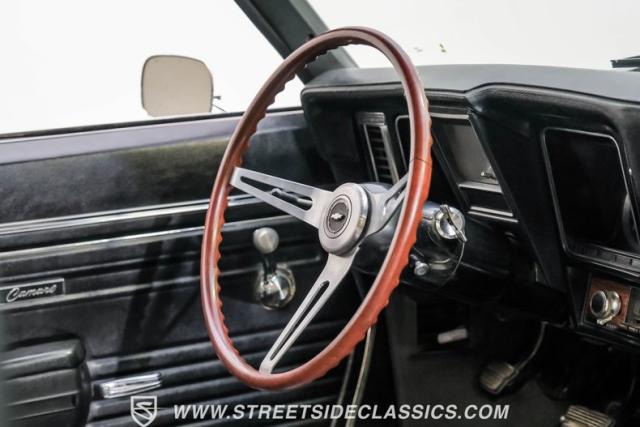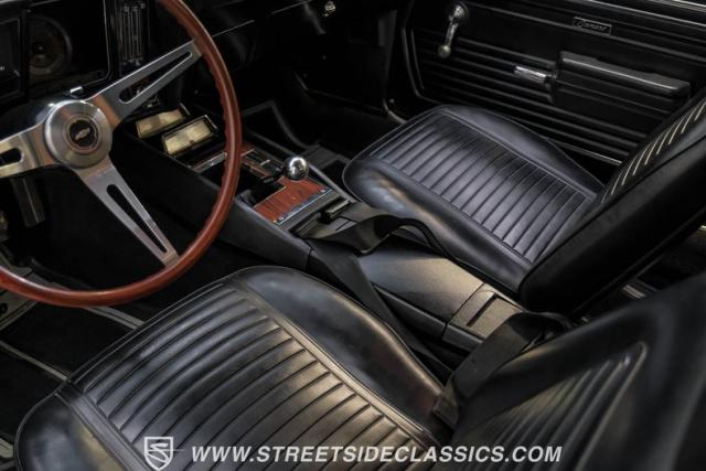 The Z/28\'s legendary DZ-code 302 cubic inch V8 was created by stuffing a 283 crank inside a 327 block, and the over-square design means the Z loves to rev. Some of GM\'s best-flowing double hump heads were installed up top to feed the snarling small block, and a date correct Holley 4053 carburetor (rebuilt in 2019) makes sure it doesn\'t starve. Neatly detailed for show, the engine bay features Chevy Orange paint on the block, proper finned aluminum valve covers, and reproduction hoses and clamps throughout. Even the original exhaust manifolds were retained and left raw, so they look just like they would have moments after rolling off the transporter, and the black snorkeled air cleaner up top is the coupe de grace. All Z/28s were Muncie 4-speeds and this particular M20 hooks to a rugged 12-bolt out back with 3.73s inside, as well as a correct Gardner transverse dual exhaust system. The front end, all four springs, and master cylinder were rebuilt/replaced in the last handful of years, and even the engine was refreshed with a host maintenance items, meaning this Z/28 is ready for the road today. Shiny 15-inch Rally wheels wear proper Goodyear Wide Tread GT white-letter tires, finishing off the period-perfect presentation in a big way.