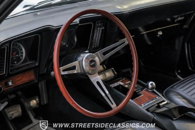 The code 711 Black Vinyl bucket seat interior is anything but basic, and the black-on-black combination is really the best choice for a vintage Z/28 (let the letters from the Cortez Silver fans roll in). Period-perfect seat covers, including the federally-mandated headrests, were installed when the car was restored, but with such great care spent keeping the interior in top-shape, everything still looks and feels fresh inside. This car has several choice options, including a lovely woodgrained center console filled with white-faced auxiliary gauges at the mast, and the factory gauges just beyond that gorgeous Rosewood steering wheel feature a correct AC tach with a 6000 RPM redline. There have been no real deviations from stock in this high-point F-body, which means even the Delco AM/FM radio remains in the dash and a polished Hurst shifter manages the gears, while period-perfect pieces like the plush black carpets, taut headliner, matching door panels, and super-clean rear seat prove that that nothing was overlooked in this build. In back, the spacious trunk offers correct spatter-finish paint and includes a reproduction mat and a full-sized spare tire assembly with jack.