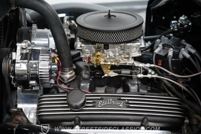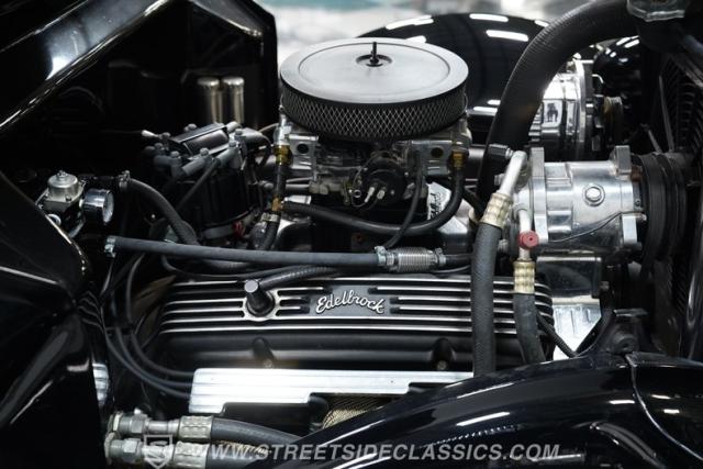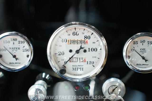 Step inside to find an interior designed for comfort and cool cruising. The cabin features a clean, full replacement with split bench seating upfront and a bench seat in the rear, all upholstered in smooth leather. Upgraded Auto Meter gauges provide precise readouts while a vintage ACC air conditioning system vents cool air through the dash. Convenience is at your fingertips with power windows and a tilt steering column, making every drive a pleasure whether you\'re on a leisurely Sunday ride or a spirited street run.
