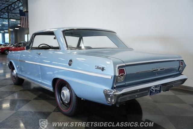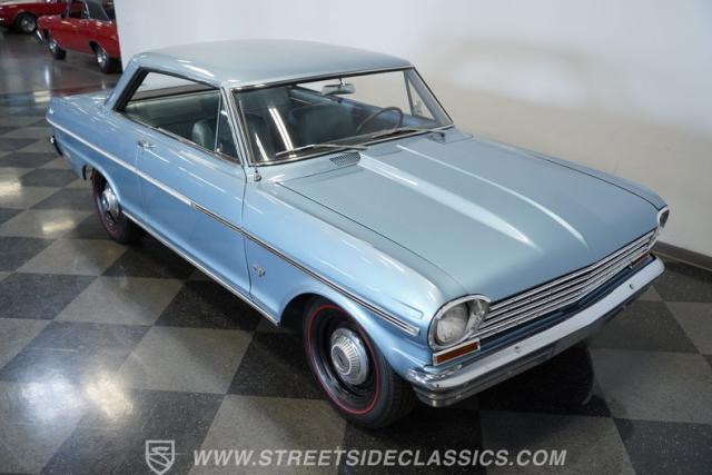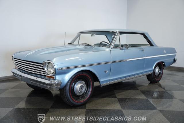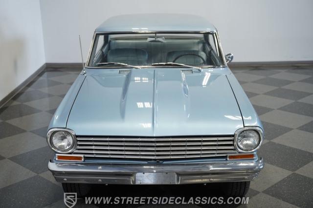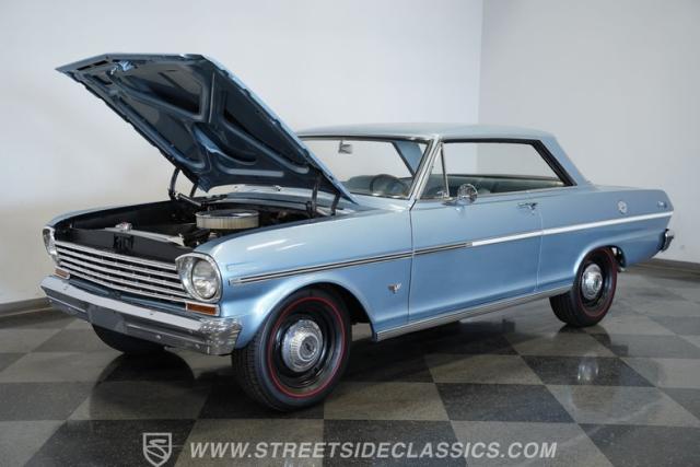 Outwardly, this 1963 Chevrolet Nova Chevy II is every inch an unembellished, well-preserved classic. From front to back, it shows consistent body panel alignment, with doors that open and close with no issue and a collection of proper badging that\'s in clean shape. It also wears a nice coat of blue paint that instantly recalls the Azure Aqua color Chevy offered the year it rolled out. But beneath its sheet metal, this vintage cruiser harbors an assortment of mechanical and aesthetic upgrades that make for a more refined driving experience and create a singular look beneath the hood. That\'s a great combination.